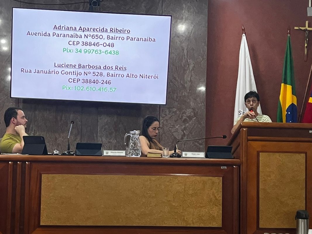 A voluntária da causa animal Zara Regina Vinhal Cardoso utilizou a tribuna para chamar atenção para a situação dos animais abandonados em Carmo do Paranaíba. Ela relatou o trabalho de diversos protetores que cuidam de dezenas de cães e gatos, tanto em suas casas quanto nas ruas, muitas vezes arcando com despesas de alimentação e tratamento veterinário com recursos próprios. Segundo ela, o número de animais abandonados tem aumentado e a situação tem se tornado cada vez mais preocupante no município.